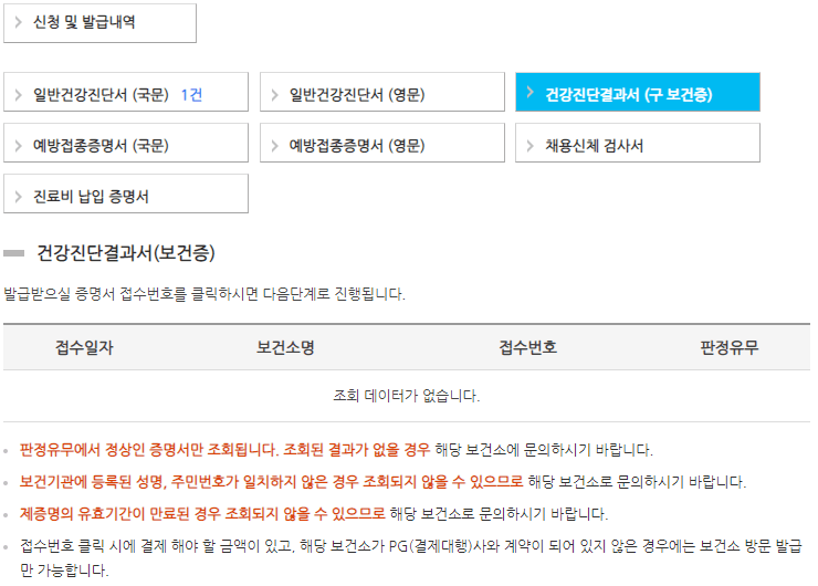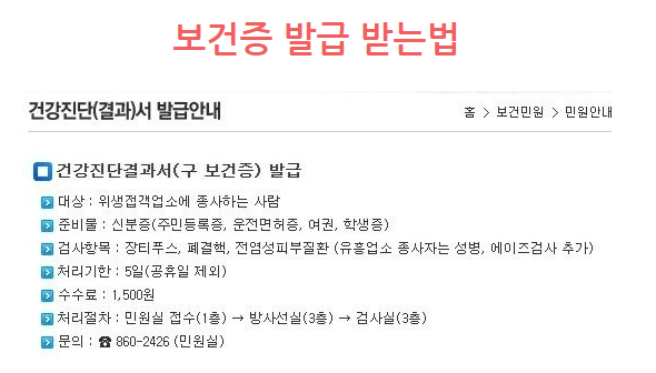 보건증 인터넷발급 및 다시 발생급 방법 안내