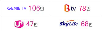 시청지역을 선택하시면 각 지역별 채널번호를 안내해 드려요. 채널번호같은 경우에는 역시나 상단 메뉴에서 볼 수 있는데 우측을 보시면 채널번호 안내 메뉴가 있으니 간택해서 하단으로 열어주면 돼요.