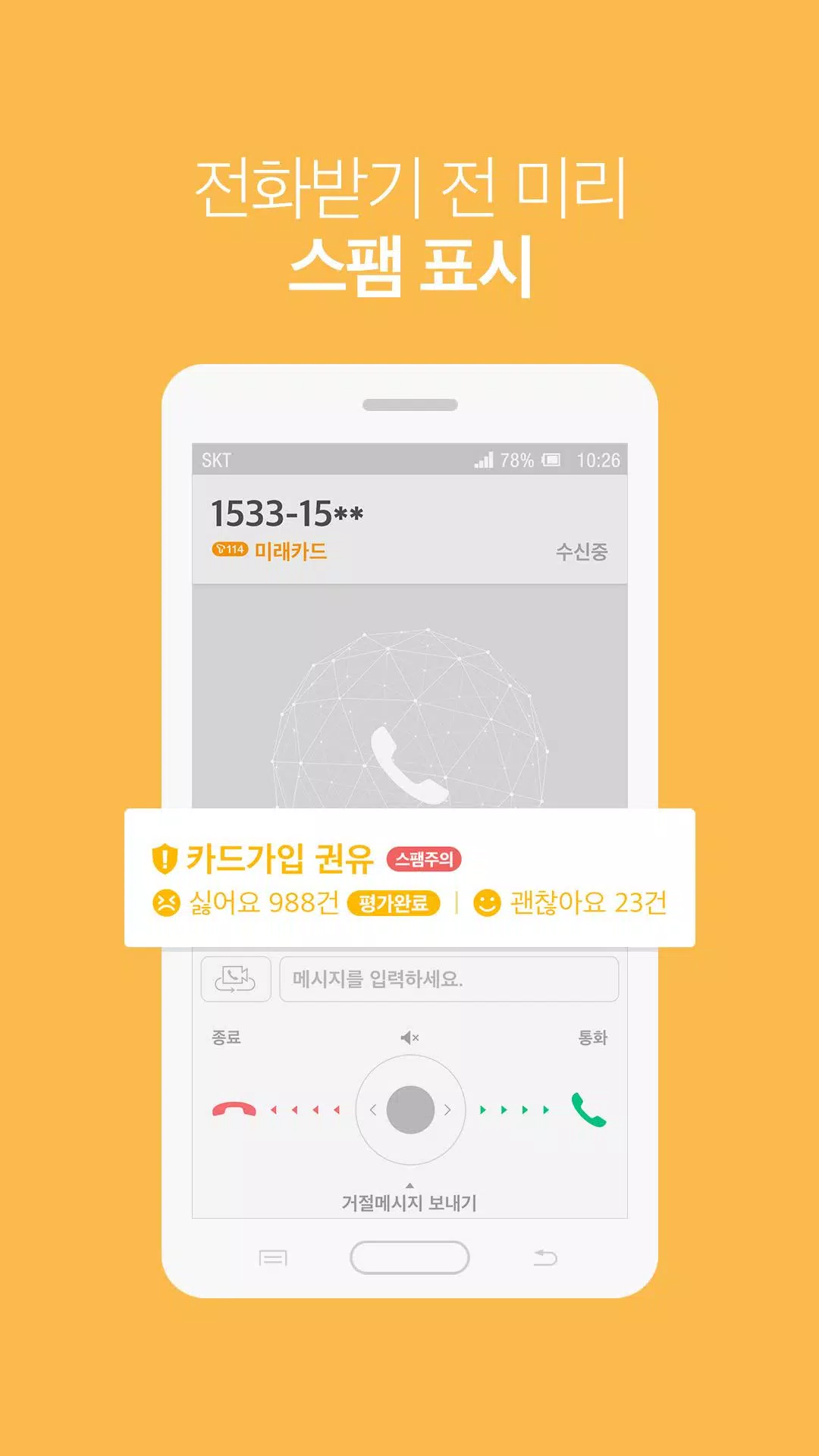주요 기능으로는 전화가 올 때 알림 창에 전화번호와 공유데이터 투표데이터 AI 분석데이터를 공급해 주고받기 싫은 전화는 AI 자동차단돼요. 또한 모르는 번호 AI 분석데이터 공급, 문자 올 때 데이터공급, 나만 보는 메모 입력, 전화번호 검색 등이 있다고 합니다.