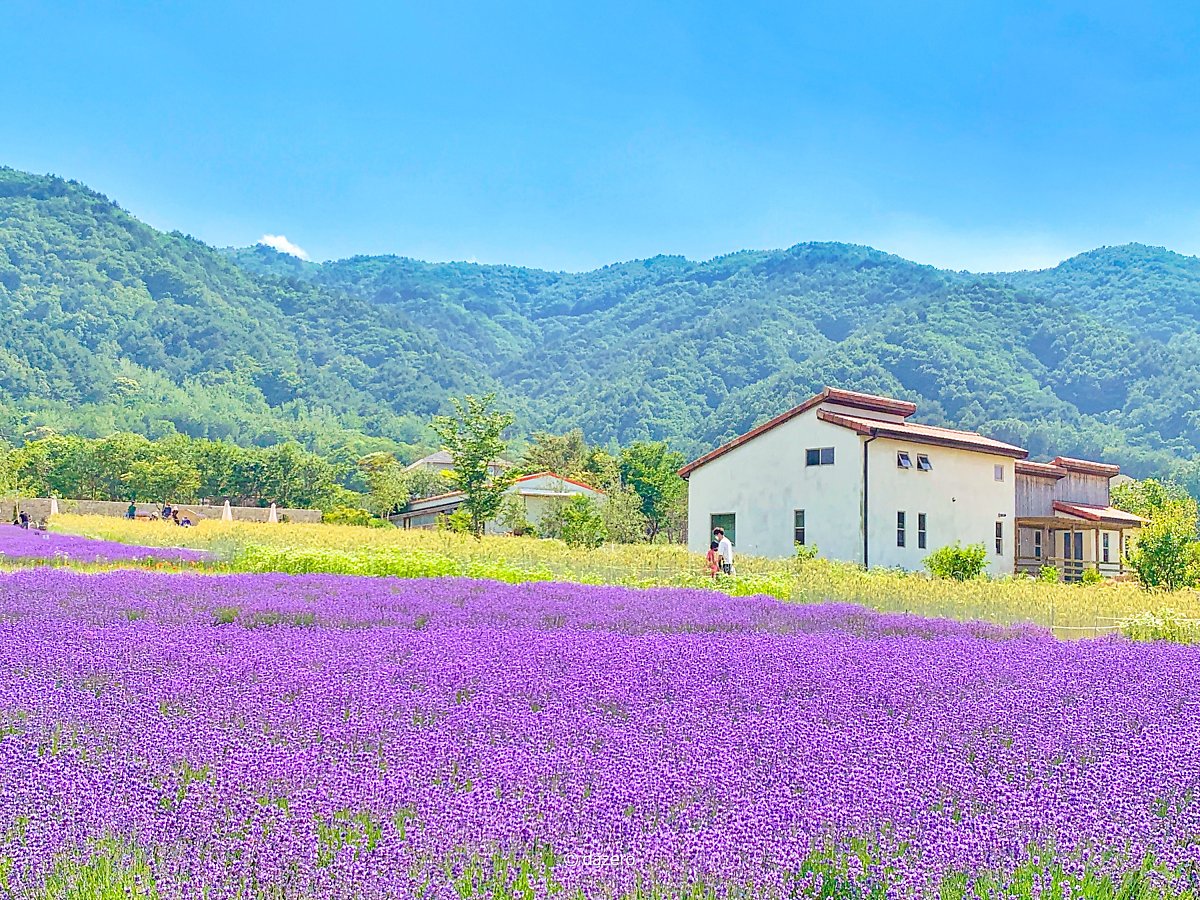 고성 가볼만한곳 중 일종인하늬라벤더팜이 바로 그런 곳이라고 부르는데요, 라벤더들이 일제히 보라색 꽃망울을 터뜨리면 장관이 따로 없으십니다. 보라색 카펫을 깔아놓은 것과 같이 라벤더 밭 한편에는 호밀과 양귀비꽃이 군락을 이루고 있으며 페인트칠 흔적가 그대로 남은 외벽이 배경과 잘 잘 맞아서 멋진 포토샷 명소가 되는 곳이예요. 마치 유럽의 어떠한 시골 마을에 온 것과 같이 느낌이 드는 곳이라고 합니다.
