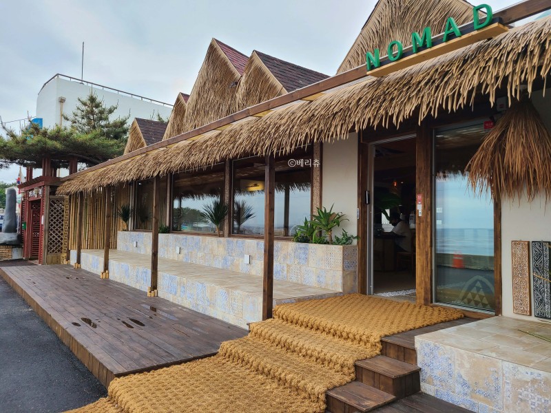 동남아 모양의 이국적인 느낌 뿜뿜하는 노메드를 고성 가볼만한곳 베스트 10으로 소개해요. 통창으로 훤히 보이는 해안도로와 바닷가를 볼 수 있고 라탄 인테리어의 이국적인 경향를 느끼며 가만히 앉아서 물멍때리기 너무 좋은 곳이었어요. 야외에 좌식의자가 펼쳐져 있어 거기에 앉아 커피 한 잔 마셔주면 힐링 그 자체이예요. 사람들로 붐비지 않는 해변이 바로 앞에 있기에 한적하고 조용하게 바다를 깨닫을 수 있고 해안도로따라 드라이브하다가 잠시 쉬어가기 좋은 곳이기도 하더라고요.