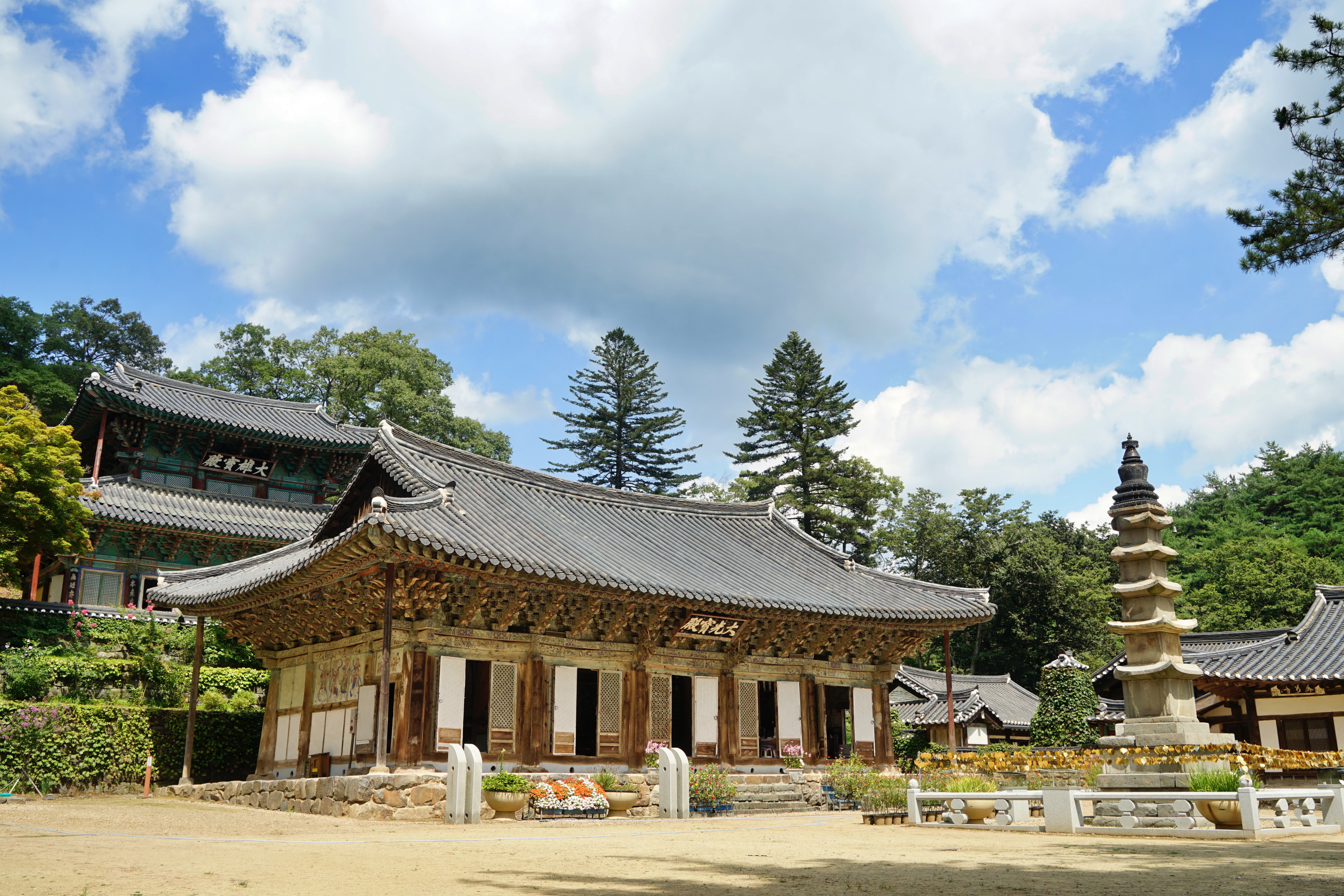 성인기준 입장료는 3천원이며 주차장 이용시 4천원에 하루종일 주차가 가능하다고 하고요. 그럼에도 불구하고 사람들이 찾는 이유는 사찰을 돌아보기에 먼저 주차장 부터 입구까지는 걸어서 30분정도 필요로 하는 등산길이 정말 좋다고 하고요. 나무 그늘에 바람도 시원하고 진입로에는 하천 좌우로 벚나무들이 서있어 벚꽃이 피어나는 계절이면 벚꽃터널이 새로 생겨나게해서 장관이라 해요.